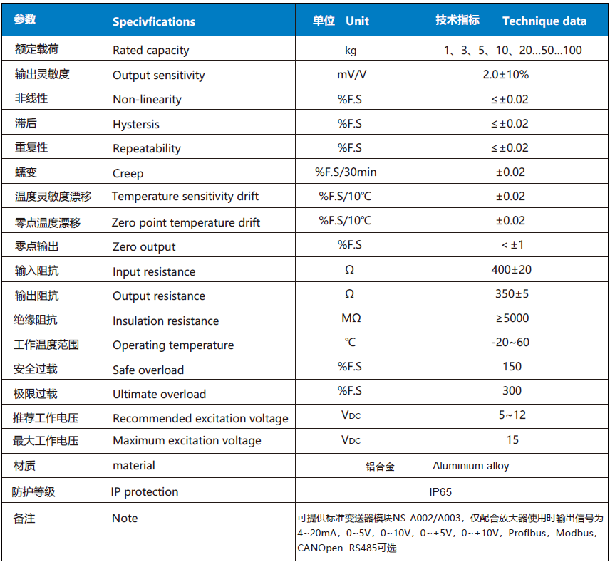 NS-TH5 系列稱重傳感器,采用優(yōu)質(zhì)鋁合金制作;