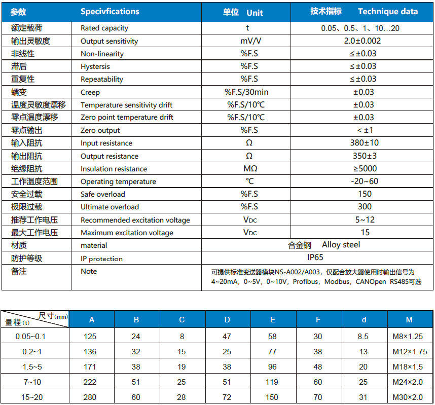 NS-TH5 系列稱重傳感器,采用優質鋁合金制作;