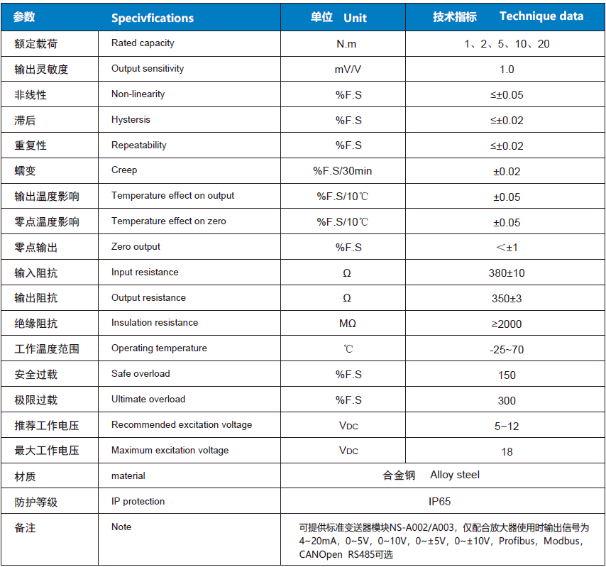 NS-NJ1 系列 靜態(tài)扭矩傳感器