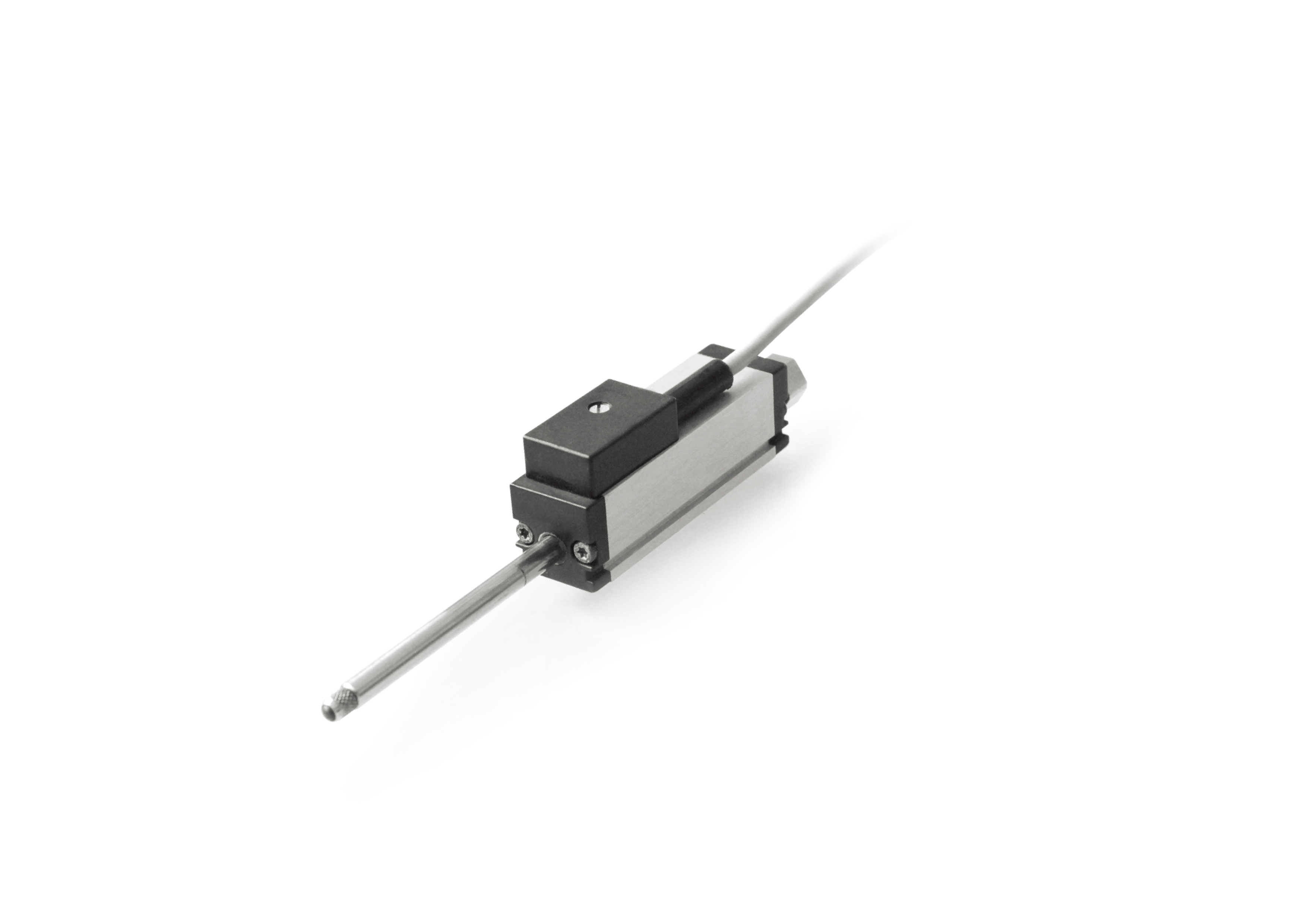 具體原理是由可拉伸的不銹鋼繩繞在一個有螺紋的輪轂上,此輪轂與一個精密旋轉感應器連接在一起,感應器可以是增量編碼器,絕對(獨立)編碼器,混合或導電塑料旋轉電位計,同步器或解析器。