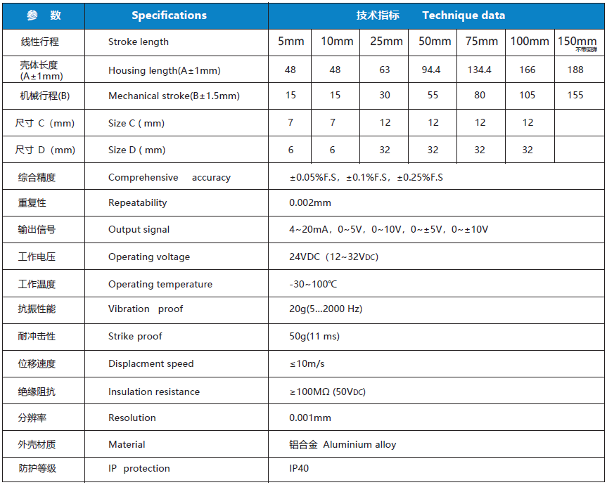 多種信號輸出:0~5V,0~10V,4~20mA,RS-485,