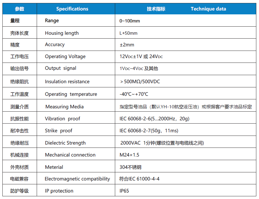 輸出信號可隨油位變化而連續變化